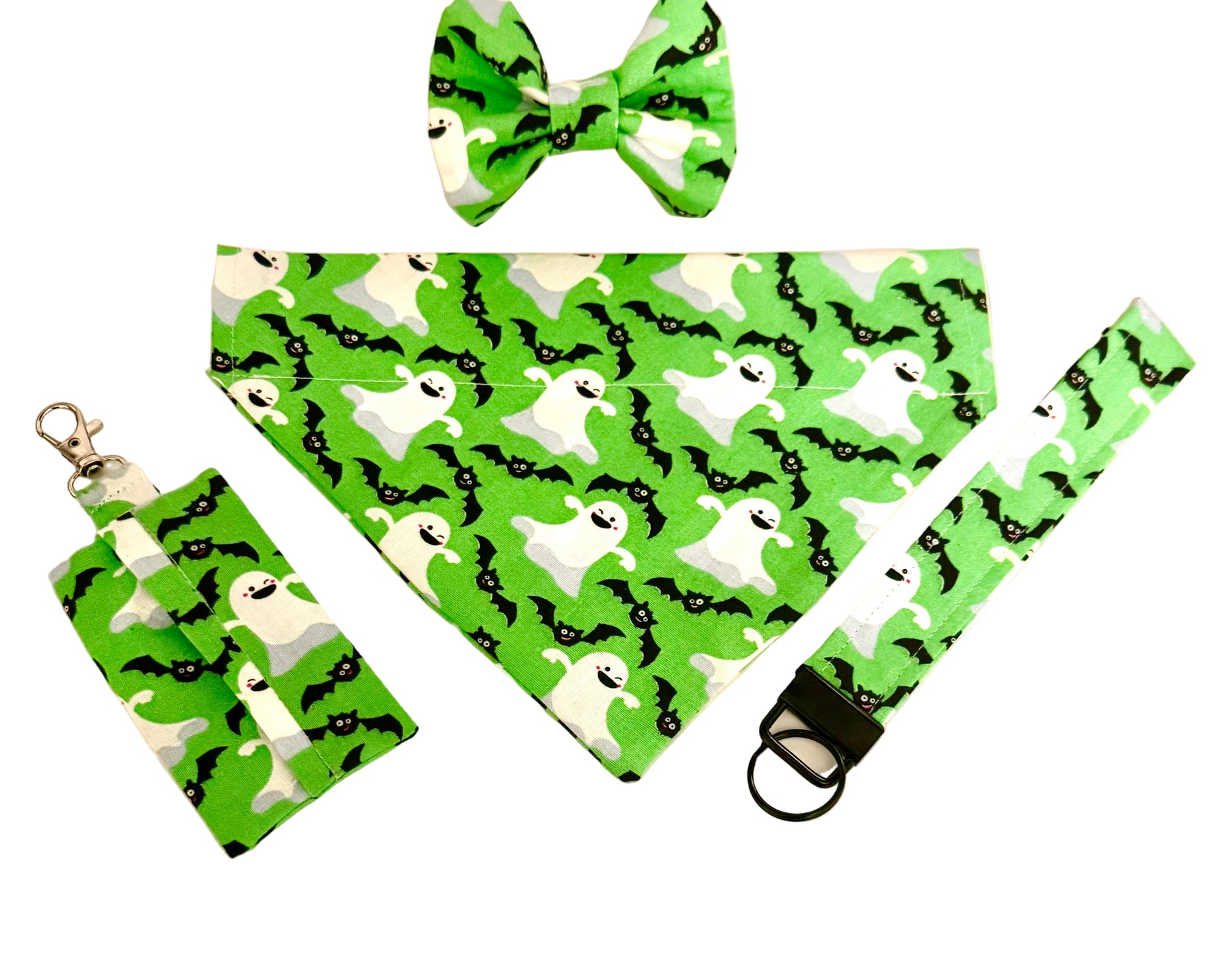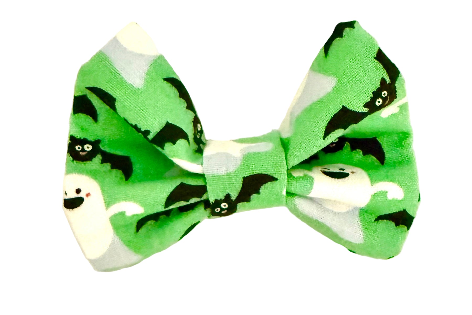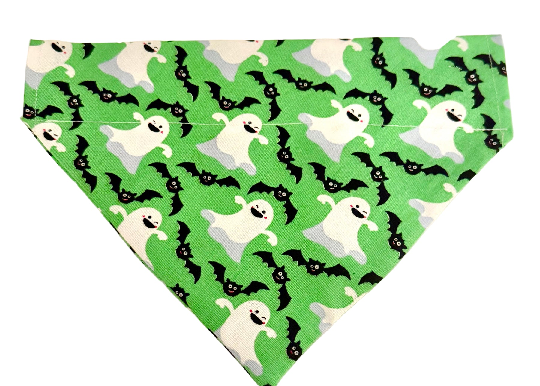 This fabric features a striking design of green, white, and black ghosts and bats, perfect for creating themed apparel or decorations. Crafted with attention to detail, its bold colors and playful motifs make it ideal for Halloween projects or festive crafts. Durable and versatile, this fabric adds a spooky yet stylish touch to any creation.
