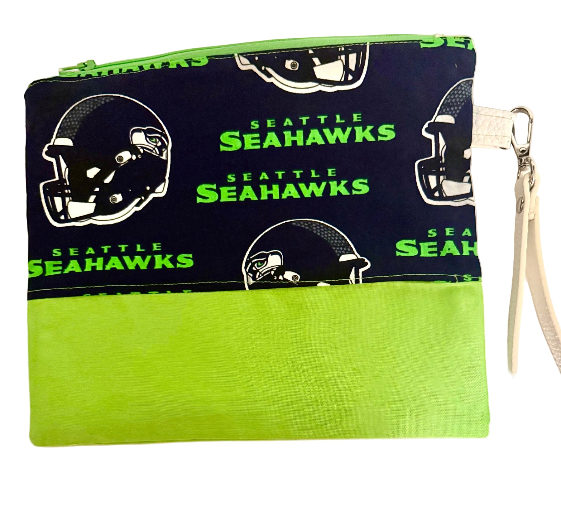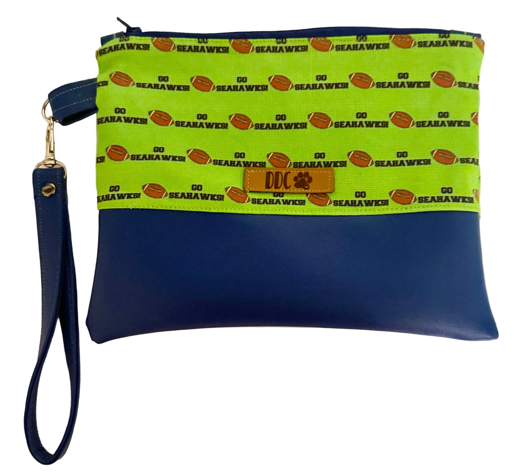 Elevate your game day essentials with this Seahawks wristlet, designed for fans who demand both style and functionality. Crafted in the iconic navy and green colorway, this compact accessory keeps your phone, cards, and cash organized while showcasing your team pride. The secure wrist strap ensures hands-free convenience whether you're tailgating, running errands, or cheering from the stands. Perfect for any devoted Seahawks supporter looking to add a touch of team spirit to their everyday carry.